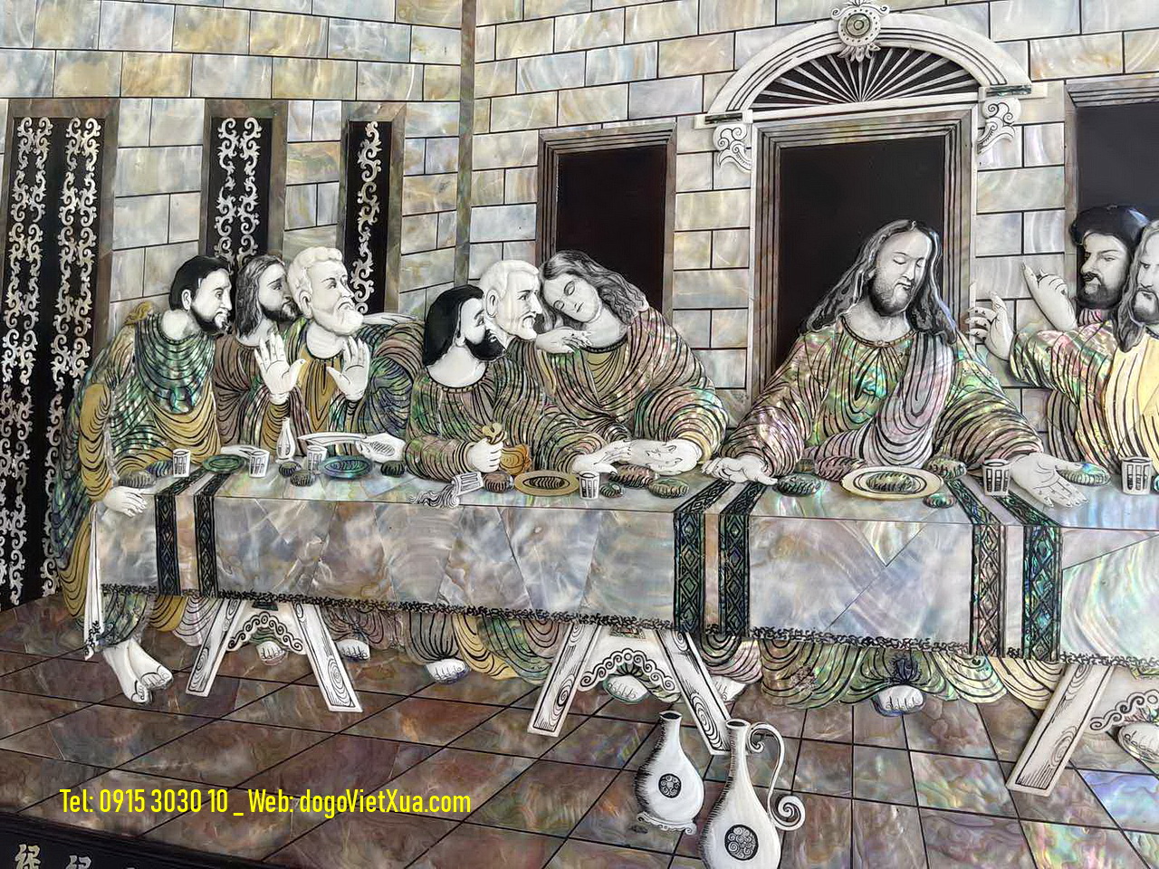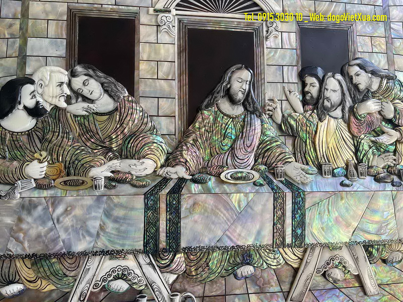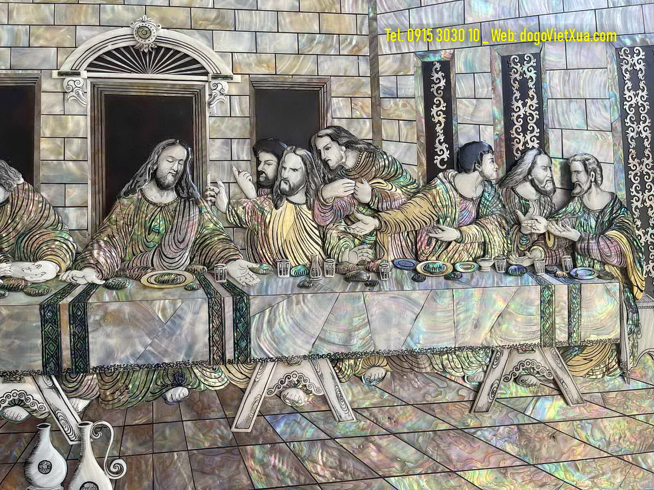 Đồ Gỗ Việt Xưa xin giới thiệu đến quý khách bức tranh cẩn (khảm) ốc Bữa Ăn Tối Cuối Cùng hay còn có tên gọi khác "Bữa Tiệc Ly ✅ Bữa Ăn Tối Cuối Cùng Của Chúa Giê-Su ✅ Phỏng theo nguyên tác bức tranh của Leonardo Da Vinci. Thần Thái Chân Thực Đến Kinh Ngạc .
