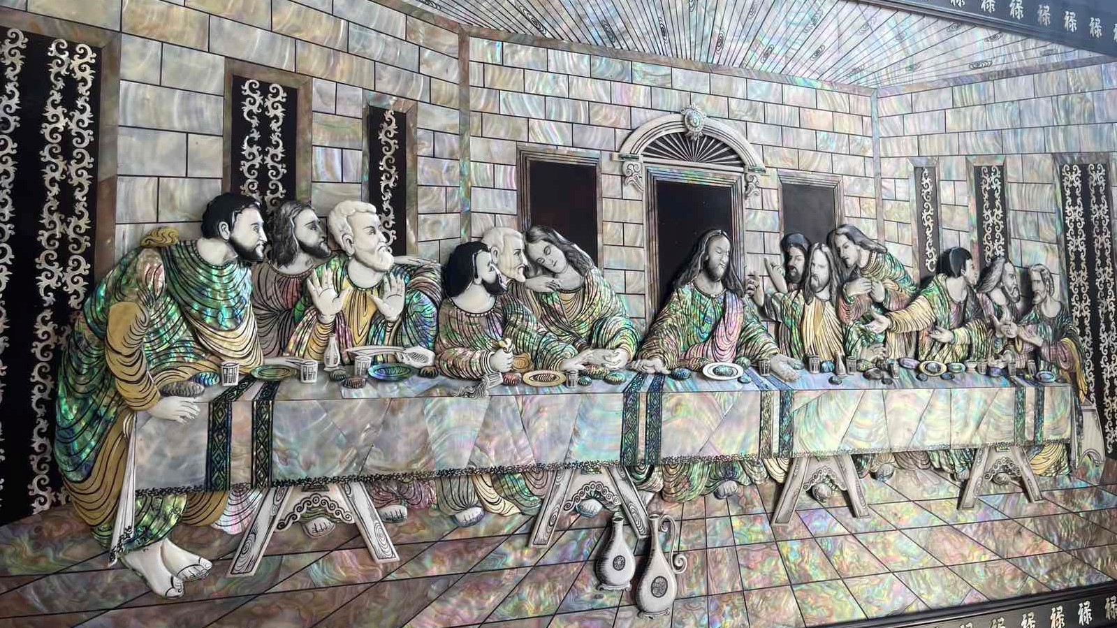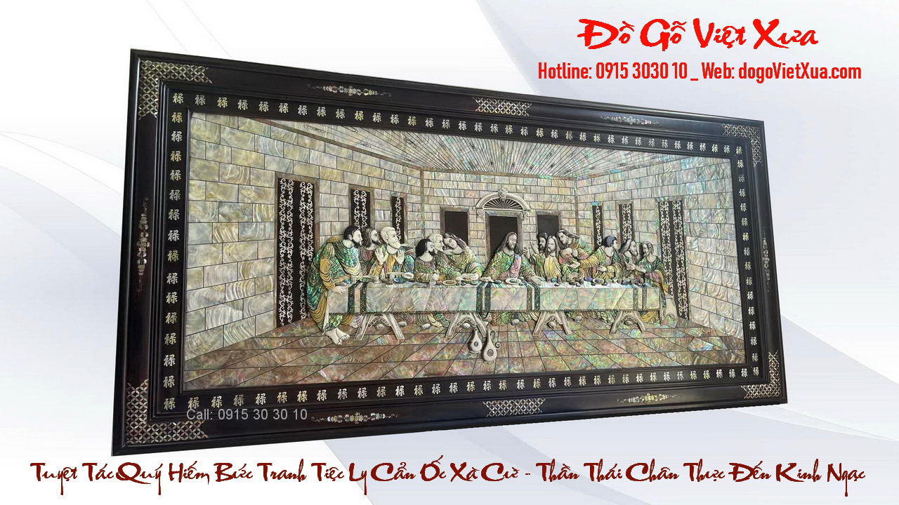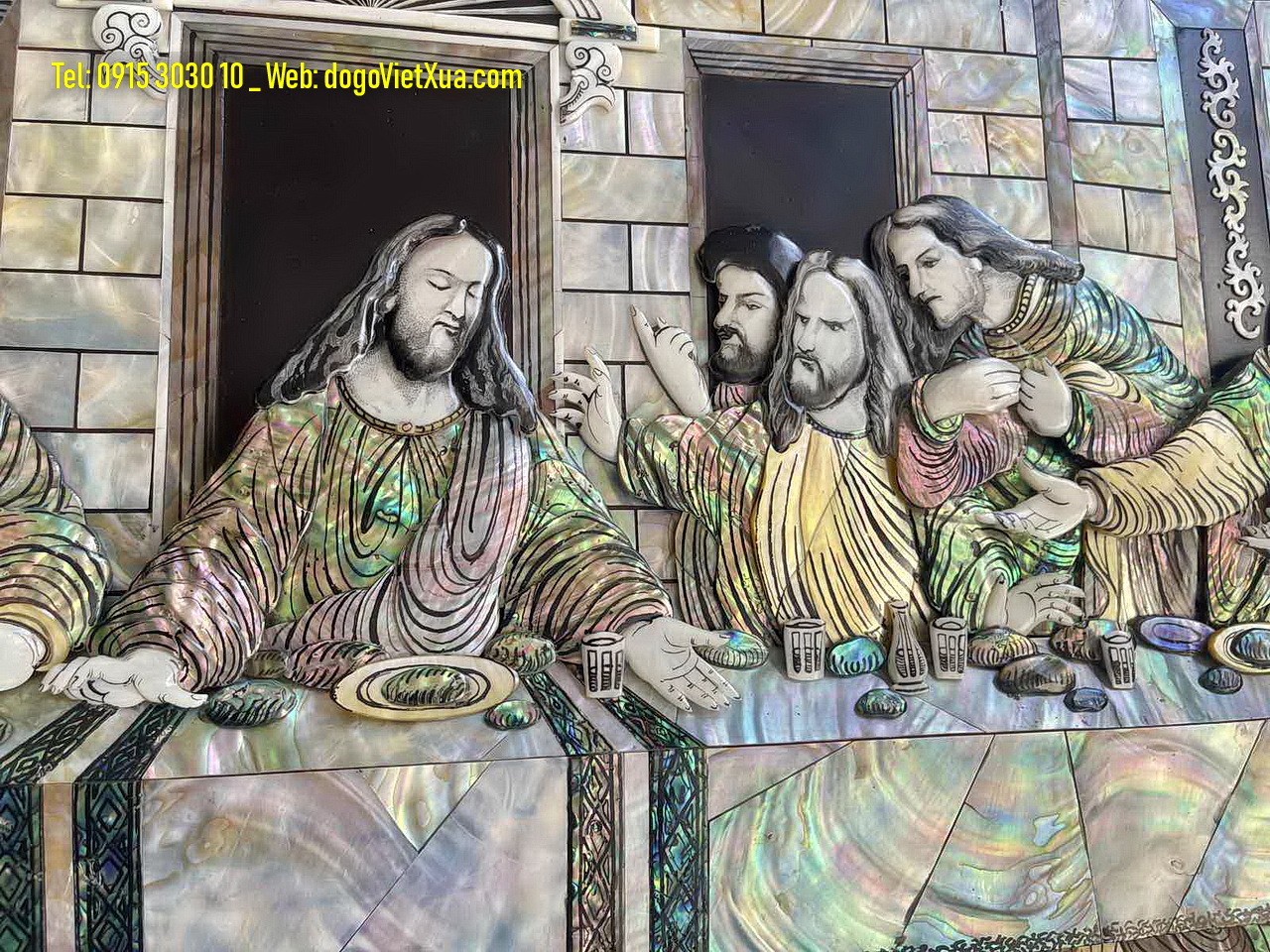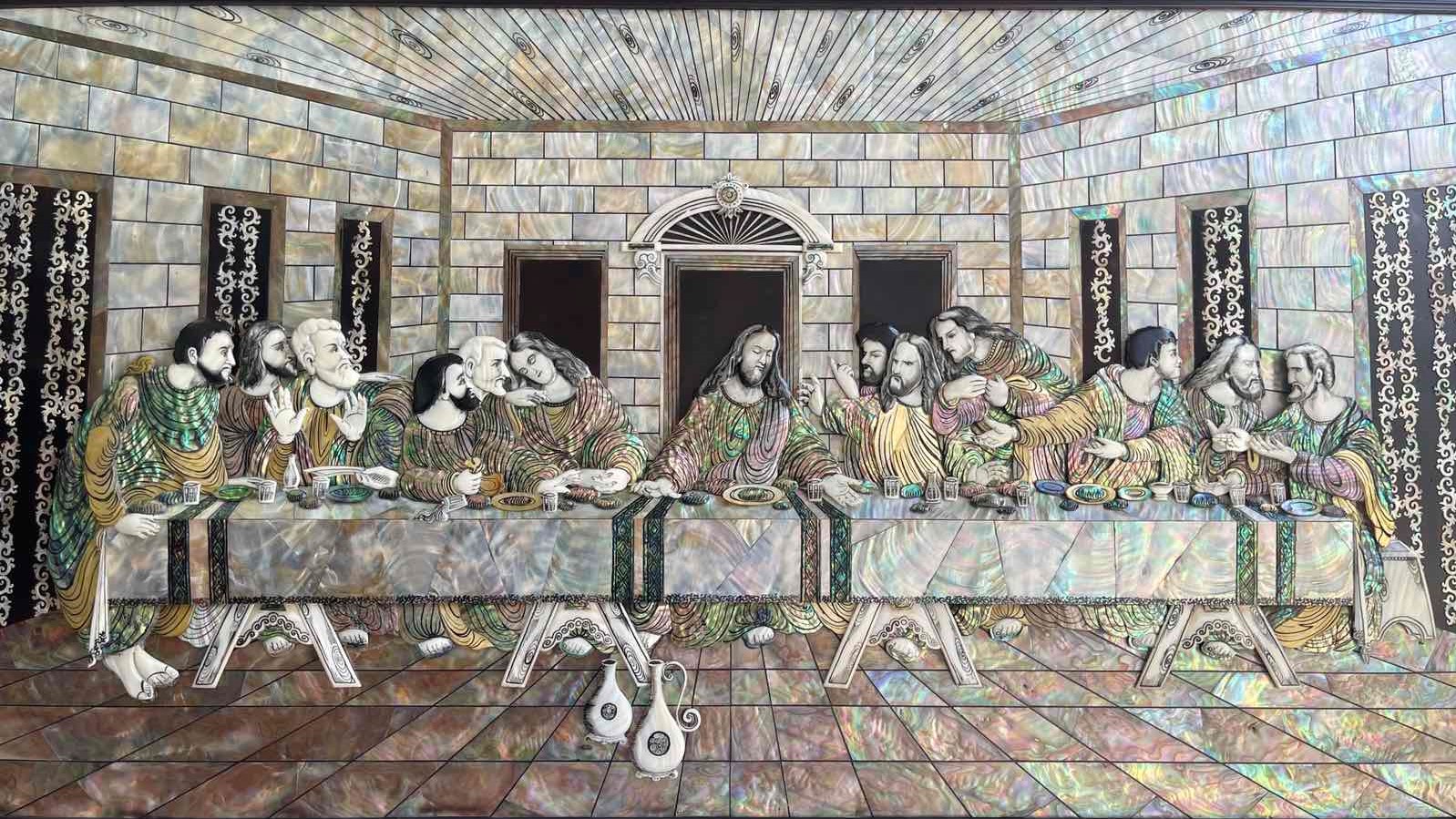 Đồ Gỗ Việt Xưa xin giới thiệu đến quý khách bức tranh cẩn (khảm) ốc Bữa Ăn Tối Cuối Cùng hay còn có tên gọi khác "Bữa Tiệc Ly ✅ Bữa Ăn Tối Cuối Cùng Của Chúa Giê-Su ✅ Phỏng theo nguyên tác bức tranh của Leonardo Da Vinci. Thần Thái Chân Thực Đến Kinh Ngạc .