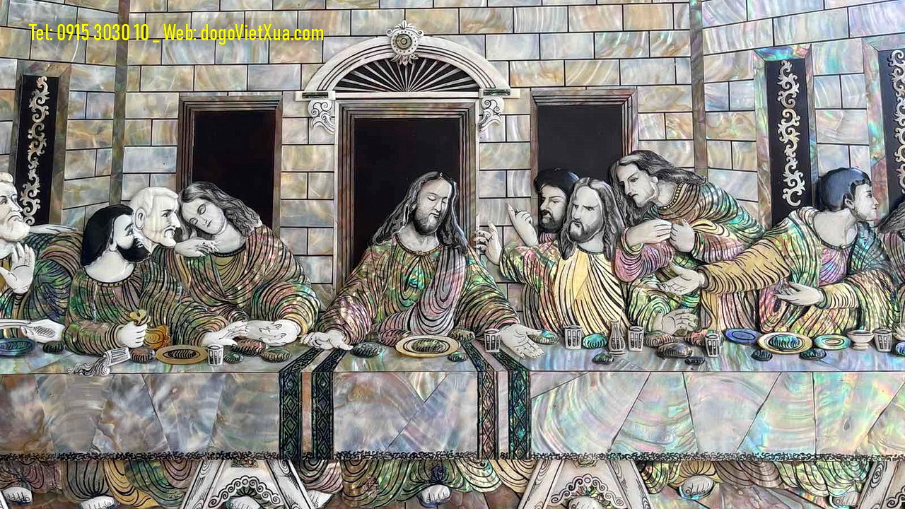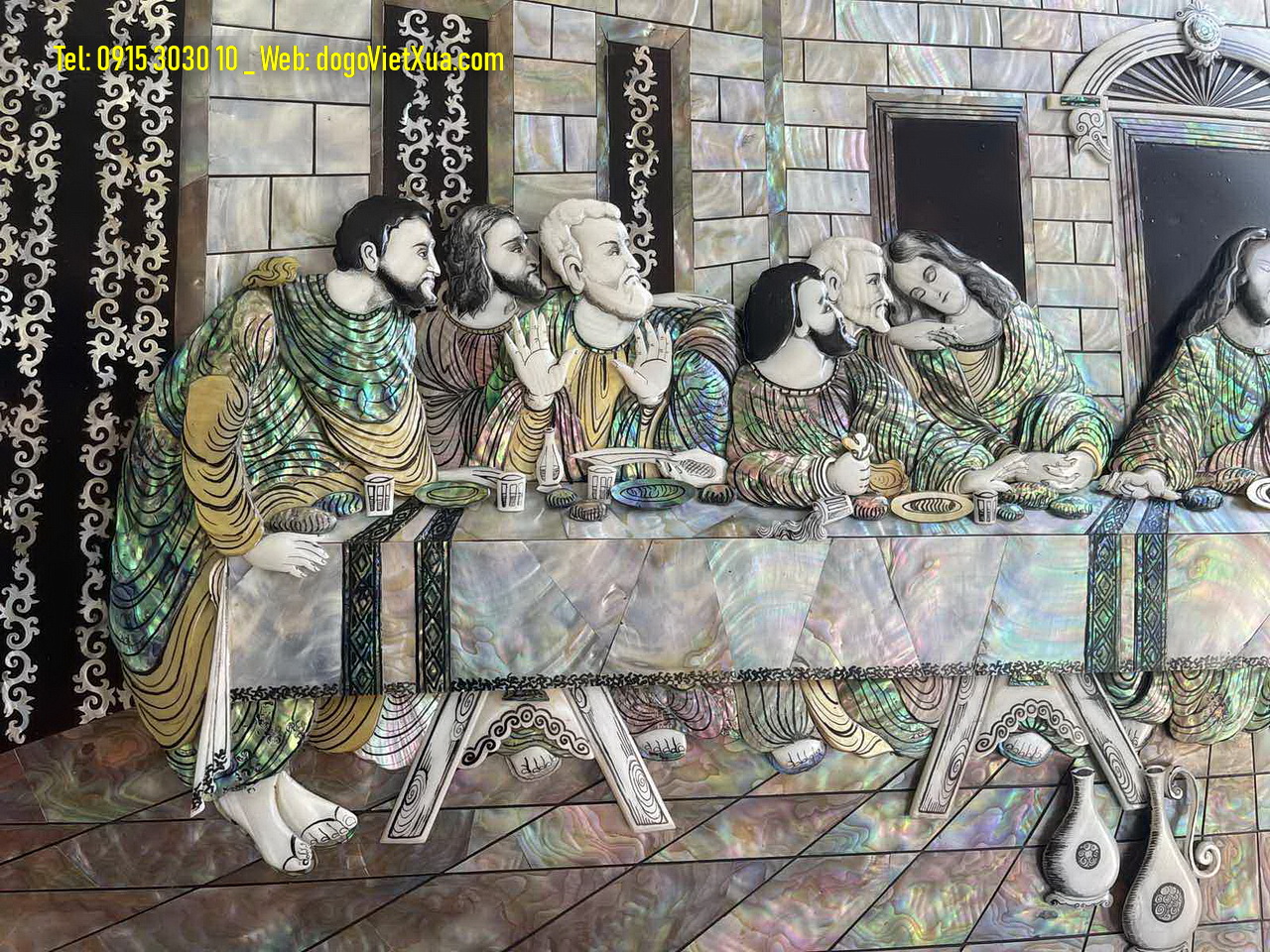 5. Một Mẫu tranh Tiệc Ly do các nghệ nhân xưa cẩn ốc - khảm xà cừ trên gỗ.